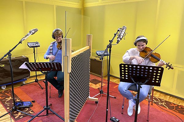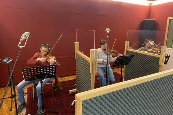 Dani Häusler hat zehn seiner eigenen Titel sowie fünf Kompositionen von Walter Balmer für Kapelle und Streichorchester arrangiert. Nachdem wir die Kapelle vor zwei Wochen bereits im Tonstudio Phonoplay aufgenommen haben, durften wir nun zwei intensive Tage im Tonstudio Gabriel verbringen, um das Streichorchester aufzunehmen.